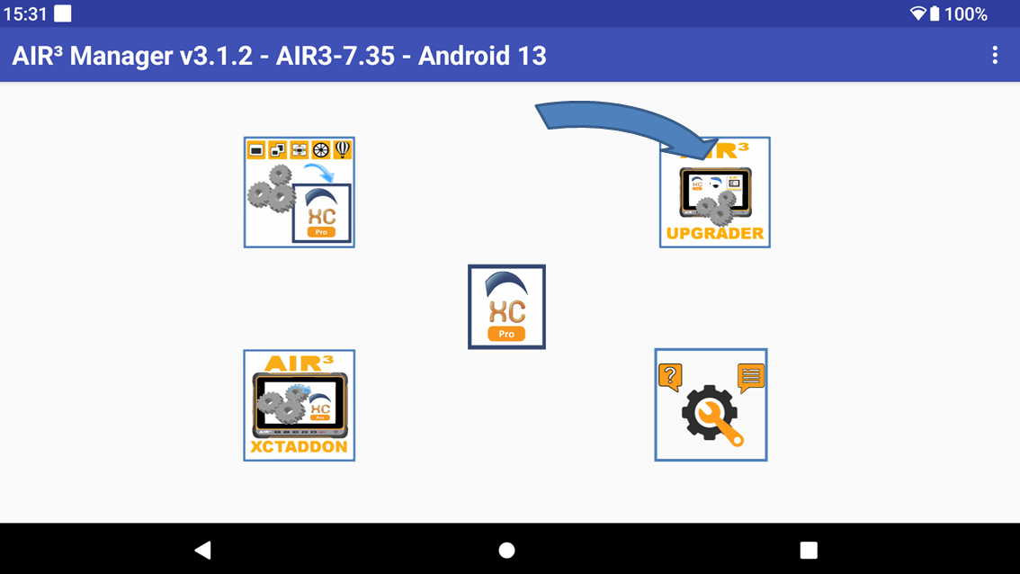 En cliquant sur le bouton « AIR³ Upgrader », vous lancerez l'application AIR³ Upgrader.