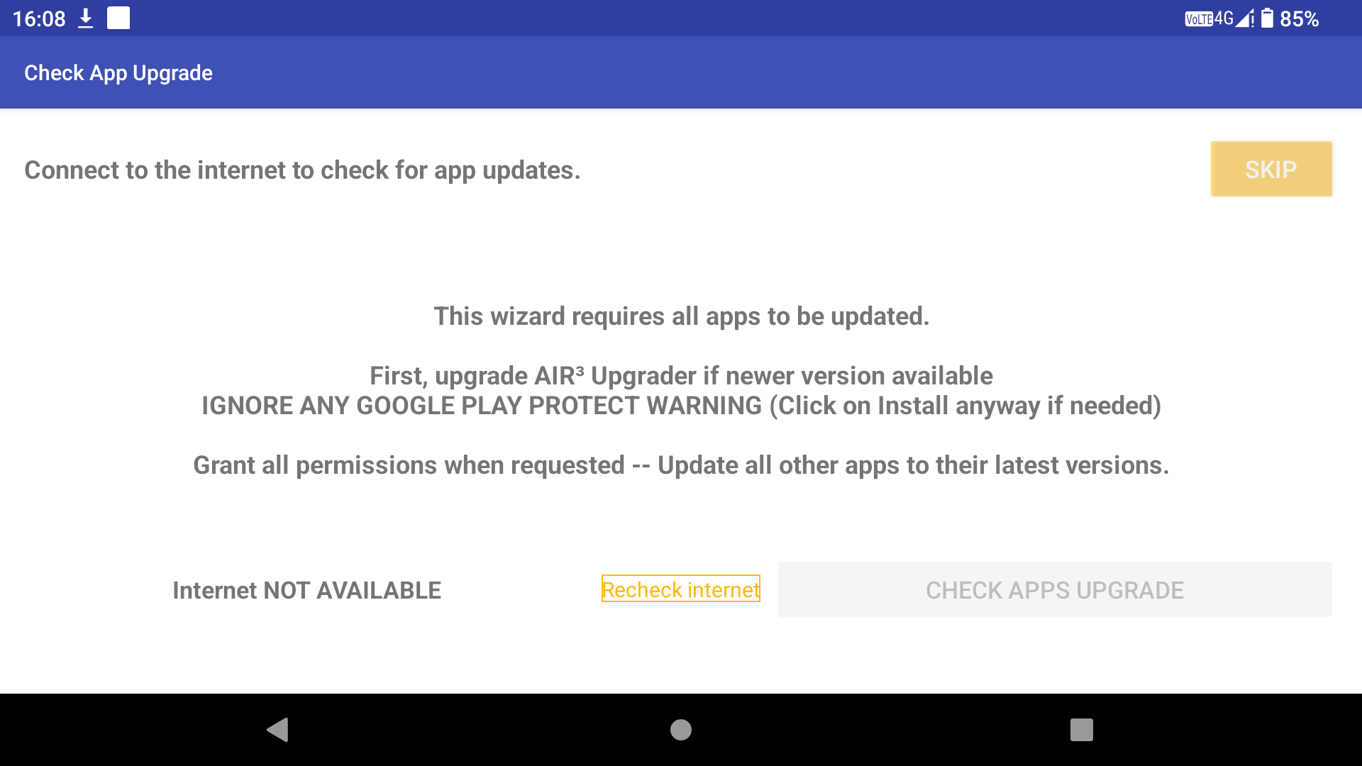 AIR³ Upgrader vous permet de vérifier si vous disposez de la dernière version des applications principales installées sur AIR³.