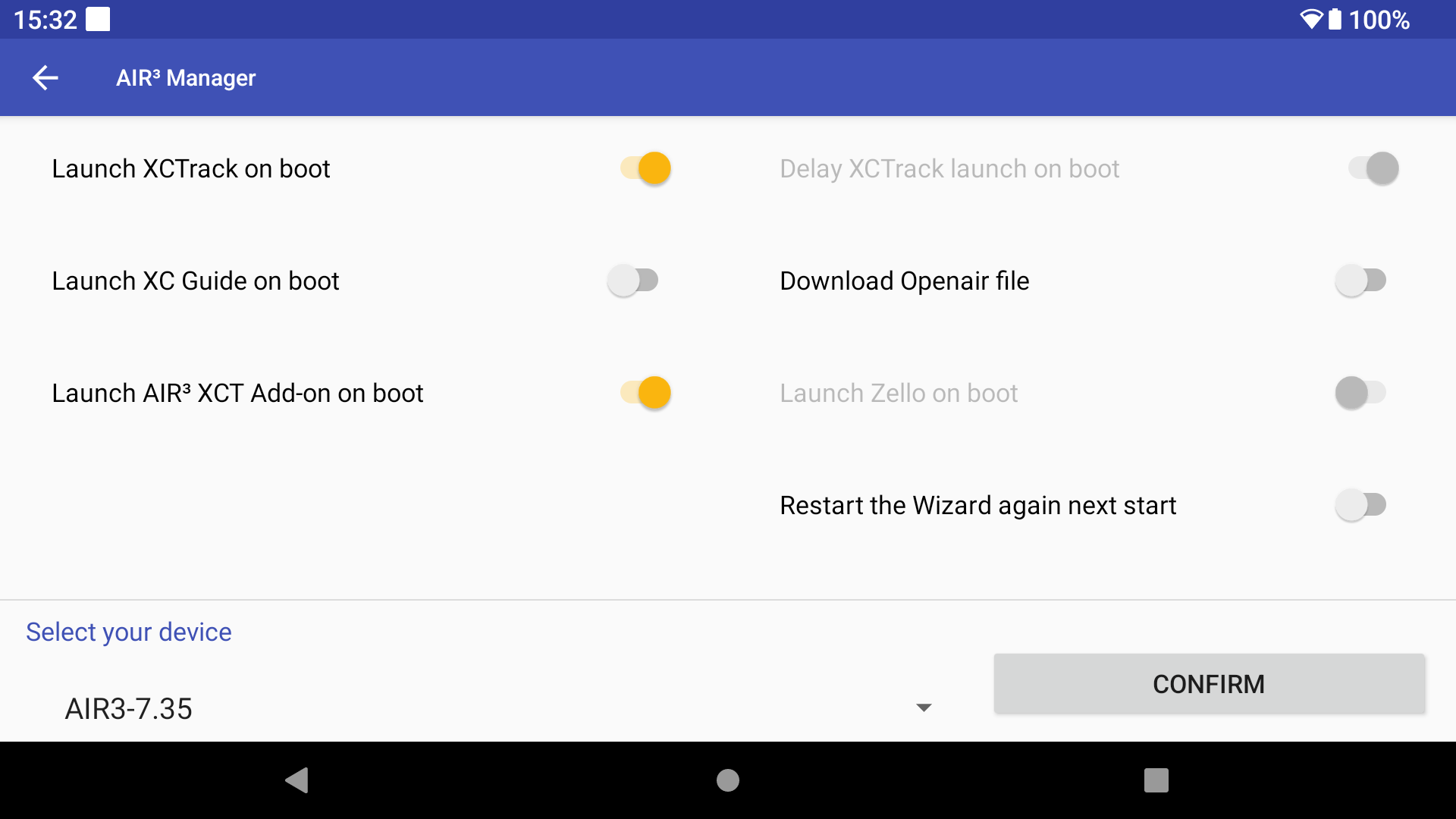 - Lancer automatiquement XC Guide, AIR³ XCT Addon, et/ou Zello au démarrage.