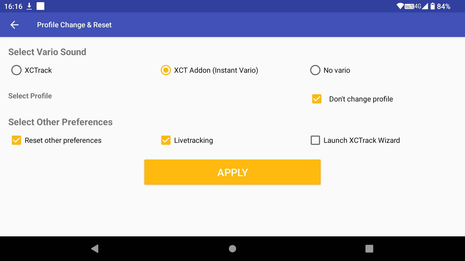 XCTrack tiendra compte du nouveau profil choisi. Cela se produira une fois lancé à la fin de l'assistant de configuration.